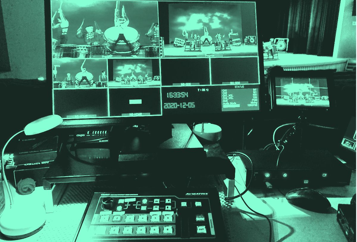 HDスイッチャーを使ったスクリーンモニター中継・インターネット配信を行います。ホール等において複数のカメラで撮影しながら迫力ある映像をスクリーンにライブ中継。さらにPC画面にも切り替えられます。また、スイッチング映像は同時収録も可能になりますので、当日プレビューも可能。同時収録ならHD映像から再編集してDVDなど残すことも出来ます。このような演出もお考えの方は、ぜひ一度ご相談ください。
