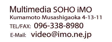 アイモは芸術活動、文化活動を積極的に応援していきたいと思っております。熊本を中心に九州一円DVD&ブルーレイのビデオ制作を行っております。内容重視の方には、ハイビジョン指定、複数台のカメラを取り入れたマルチカム撮影、4Kカメラ利用(トリミング可)、リアルタイムスクリーン上映、アクションカム導入など柔軟に対応いたしております。