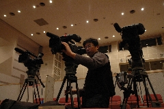 ホールの場合は会場後方からの雑音が予想される場合は、音声ライン入力をお薦めします。プロの業務用ビデオカメラが映像と音声を確実に記録します。